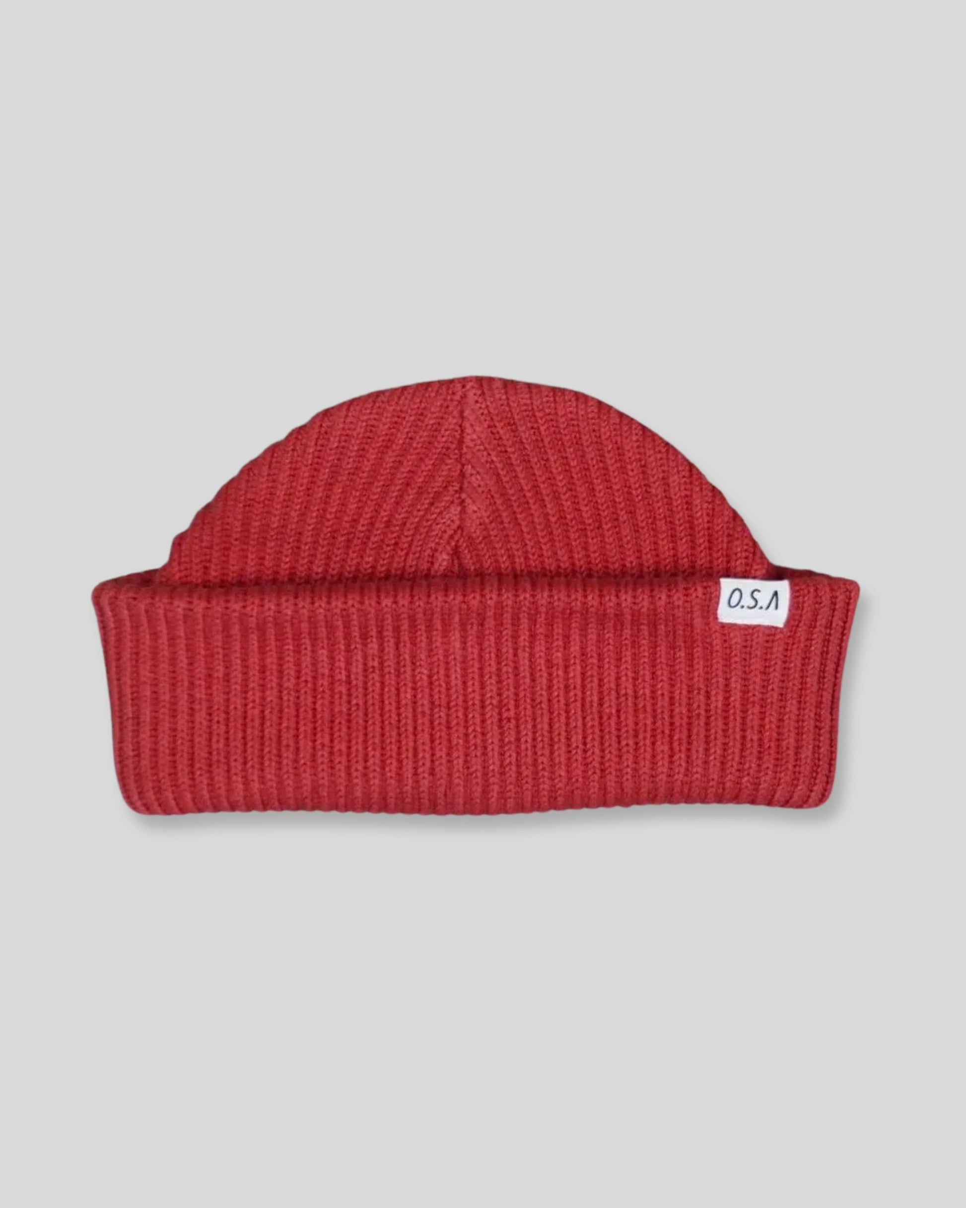 The Dock beanie - designed to fit above the ear or can be rolled down to be a full beanie tagged with the OSA label