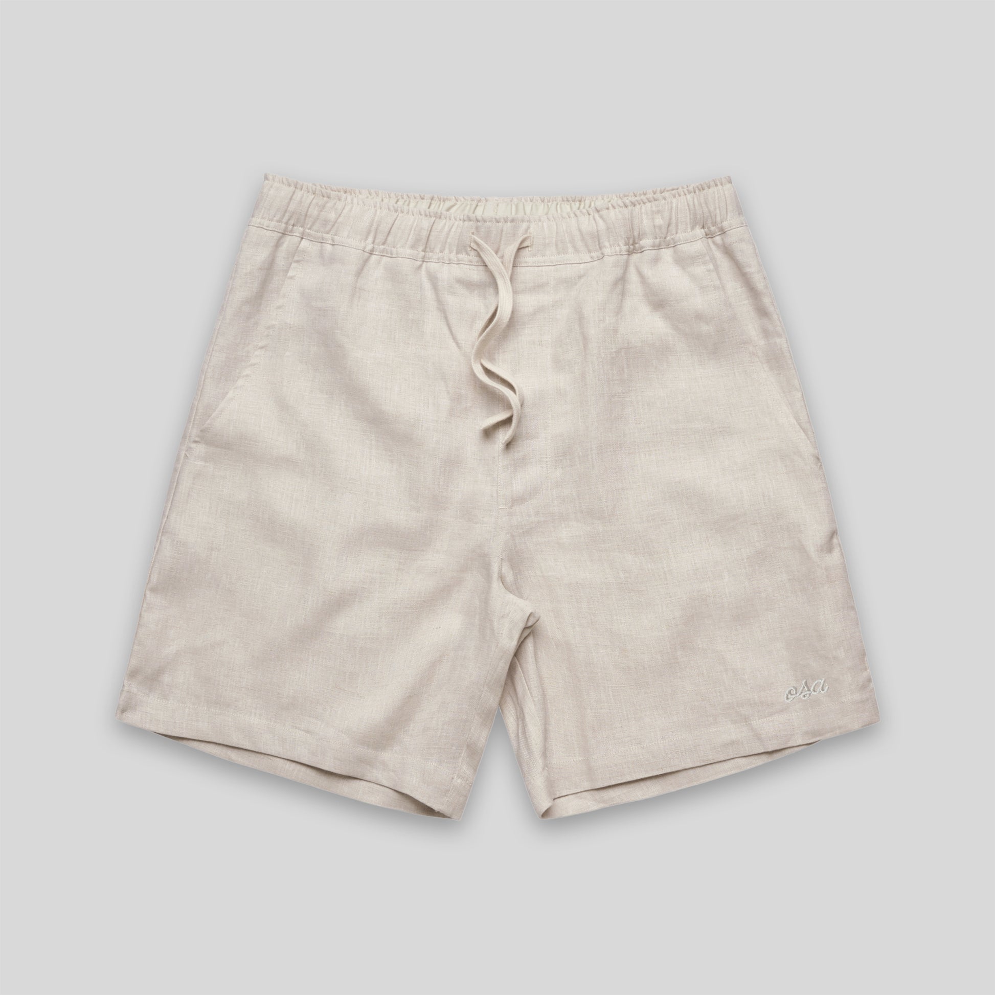Cream Summer Essentials Linen Shorts. A summer take on our Heavy Essentials collection, bringing a bright and airy feel. Created from 100% organic and recycled materials. Featuring a loose relaxed fit and giving you that effortless put together look. Perfect for those beachy days, combining with the linen shirt for the perfect holiday outfit!